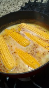 Add the corn to the pot. Reduce heat and simmer for 8–10 minutes, turning occasionally so each ear is coated in buttery goodness. -