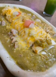Bean Burritos Smothered in Green Chile Pork