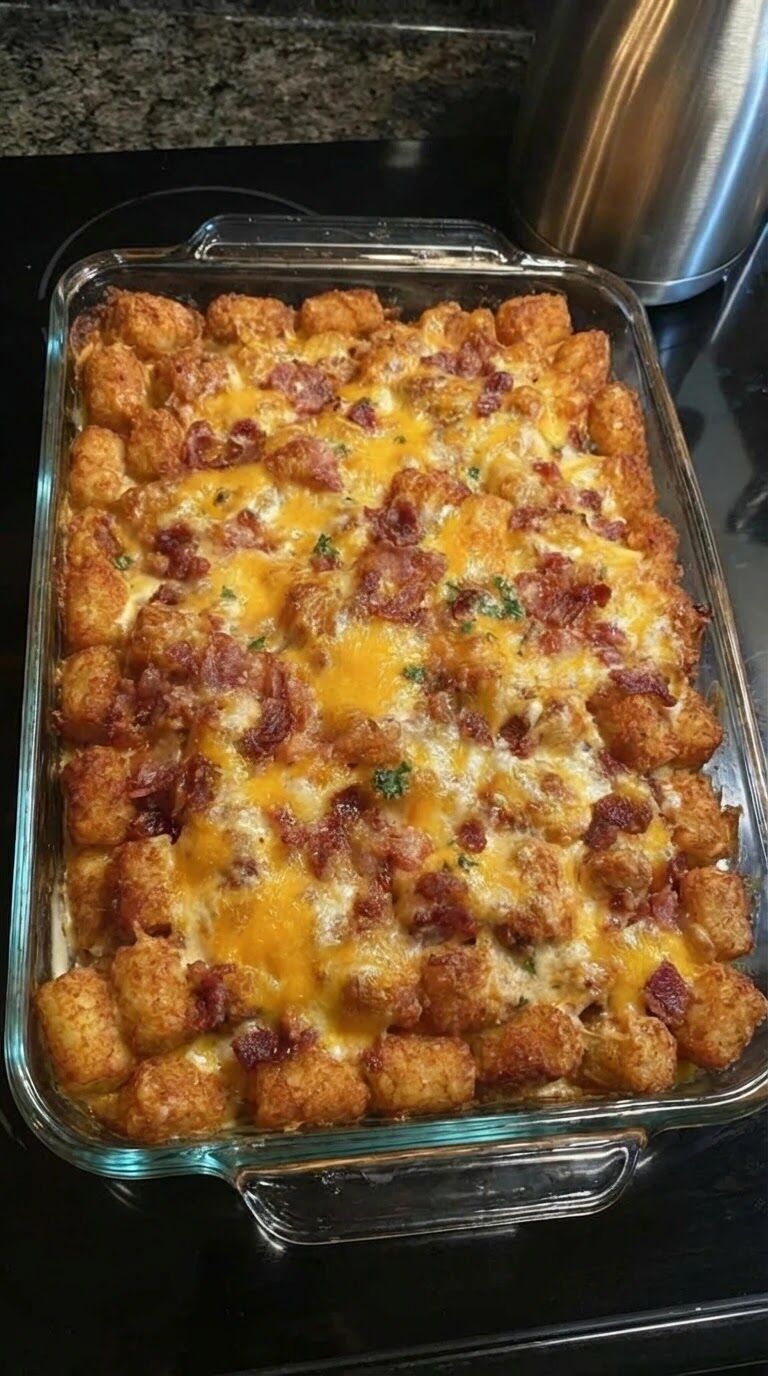 🧀 Chicken Bacon Ranch Tater Tot Casserole – Easy Comfort Food Dinner