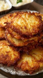 Golden, crispy, and savory, these German Potato Pancakes — also known as Kartoffelpuffer — are a traditional German favorite loved around the world. Made with grated potatoes and onions, pan-fried until perfectly crisp, they’re delicious served with applesauce or sour cream. Perfect for breakfast, brunch, or a cozy side dish.