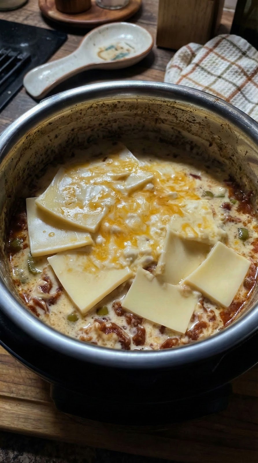 2. Once warm, add the cubed white American cheese.